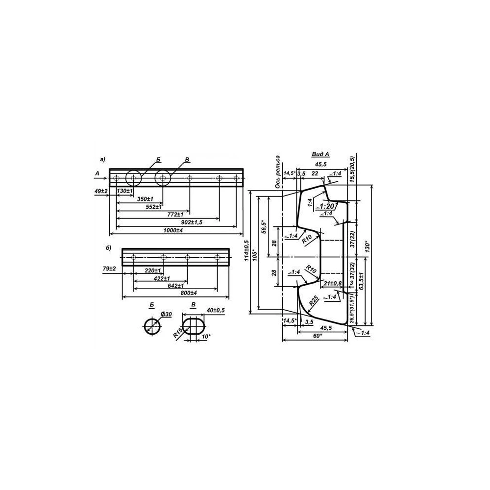 ЖД двухголовая накладка 1Р-65 используется в качестве болтового рельсового скрепления. Предназначена для скрепления шейки железнодорожных магистральных рельс Р65 с помощью стыкового болта М27х160.